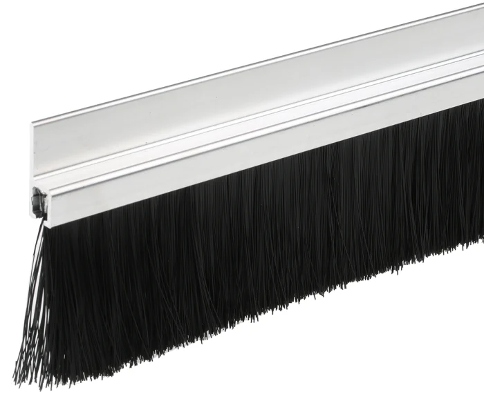 A high-quality brush strip, also known as a brush seal, serves as a specialized type of draught excluder designed to effectively seal the gap between the bottom of a door and the floor. Its primary purpose is to prevent unwanted draughts from entering a room or space, thus helping to maintain a comfortable indoor temperature and conserve heat. In addition to its draught-proofing capabilities, the brush strip offers the valuable benefit of keeping out dust, debris, leaves, and litter from infiltrating the interior of a building or factory from the external environment.